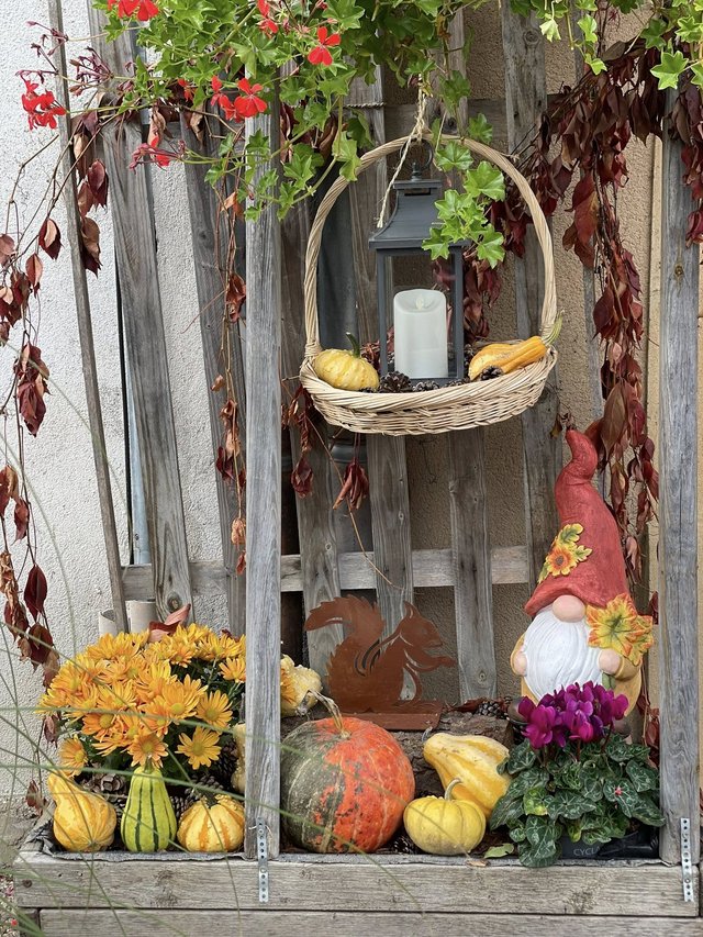 Tous les promeneurs qui déambulent devant sa maison, au 62 rue Jean Julien Barbé, peuvent découvrir avec bonheur son nouveau décor automnal : un mélange de fleurs colorées, de coloquintes et d'autres bibelots anciens, une nouvelle fois des plus réussis.