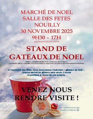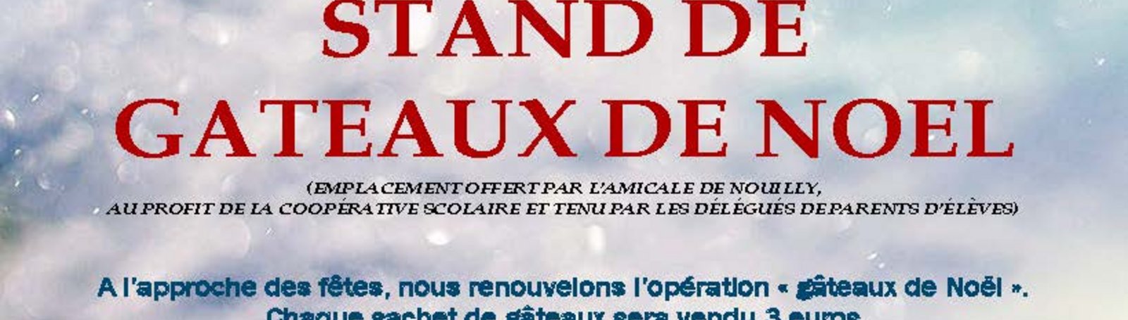 Les representants des parents d eleves tiendront un stand de gateaux de Noel.