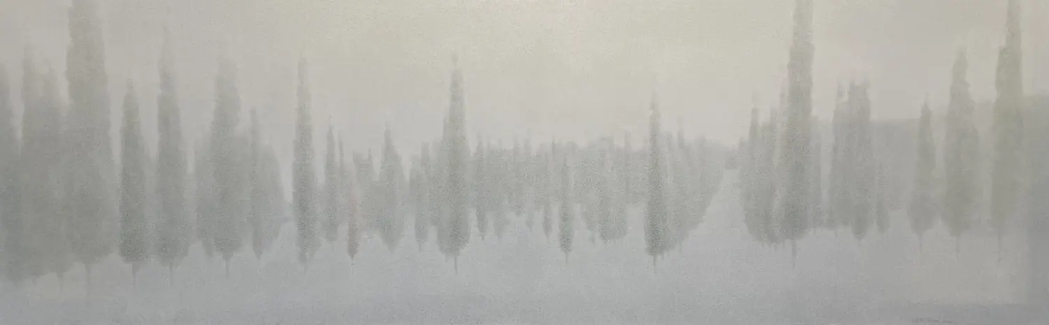 Les œuvres de Shan Weijun ne représentent pas un lieu précis : frondaisons, ramures et feuillages s’animent sous vos yeux, révélant un monde en devenir où la nature et l’architecture se répondent avec légèreté et puissance silencieuse.