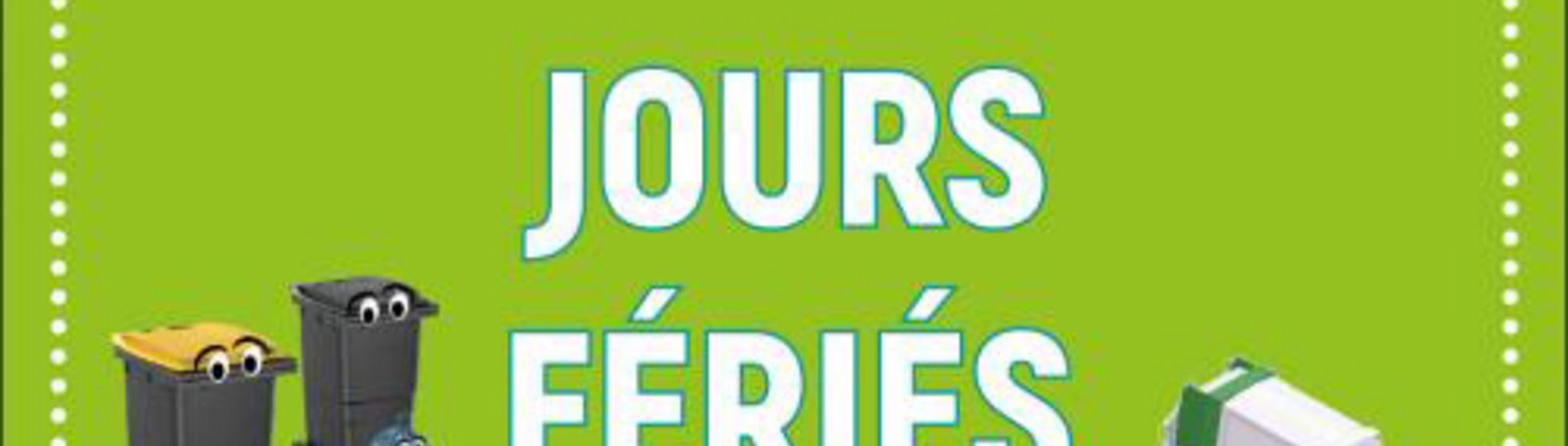 Attention : les jours de collecte des ordures ménagères et sélectives (poubelles jaunes et grises) sont reportés durant les fêtes de fin d’année. La collecte du jeudi 25 décembre est reportée au samedi 27 décembre. La collecte du jeudi 1er janvier est reportée au samedi 3 janvier.