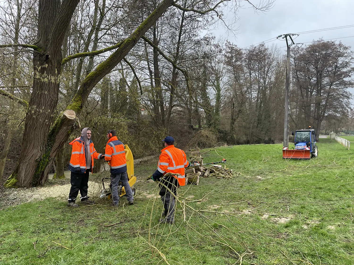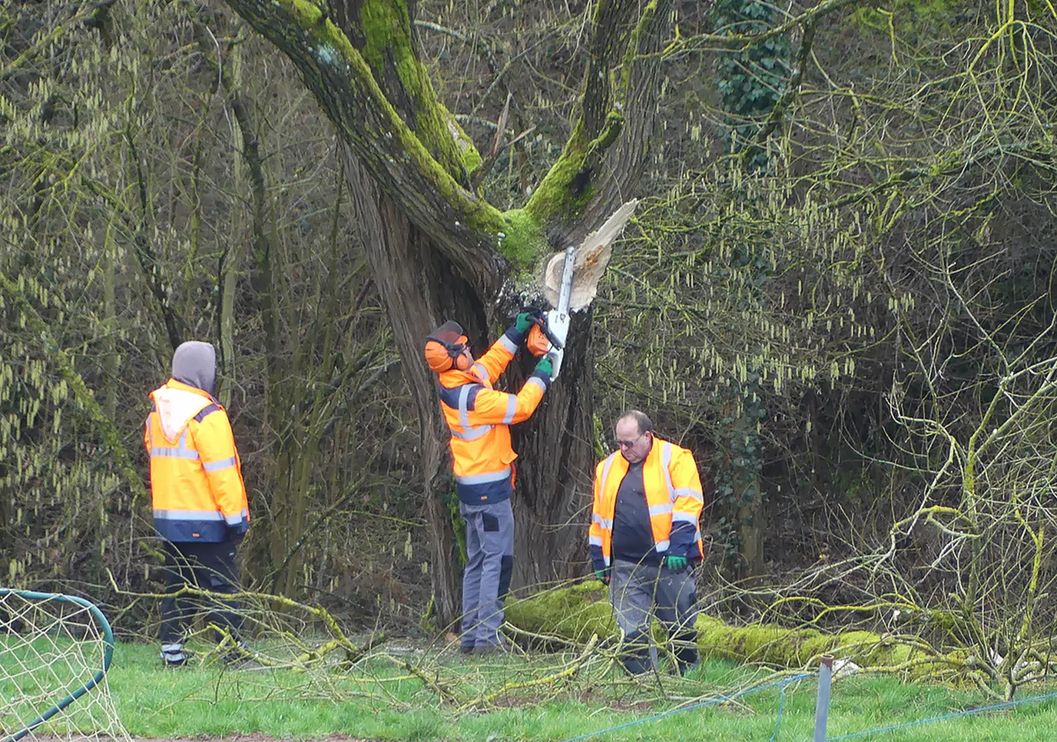 Les ouvriers communaux ont procédé à l’élagage de deux grandes branches d’un saule situé au bord du ruisseau, proche du terrain rouge d’entraînement du club de football.