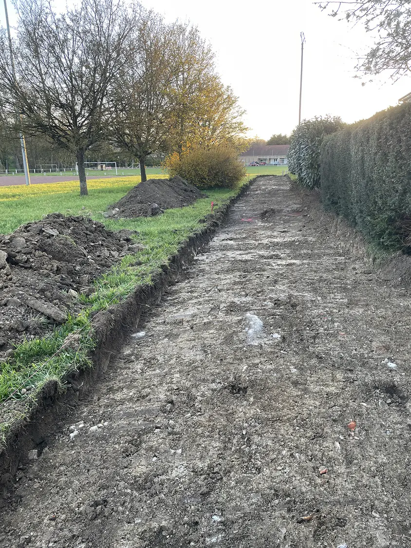 Les travaux d’aménagement du cheminement piéton/vélo le long du stade de football ont débuté mardi 7 avril. Ils dureront environ 3 semaines, en fonction de la météo.