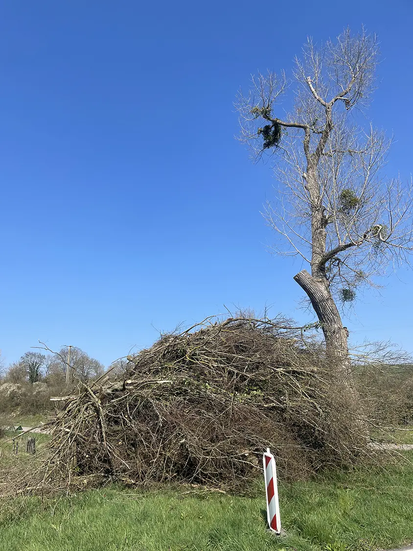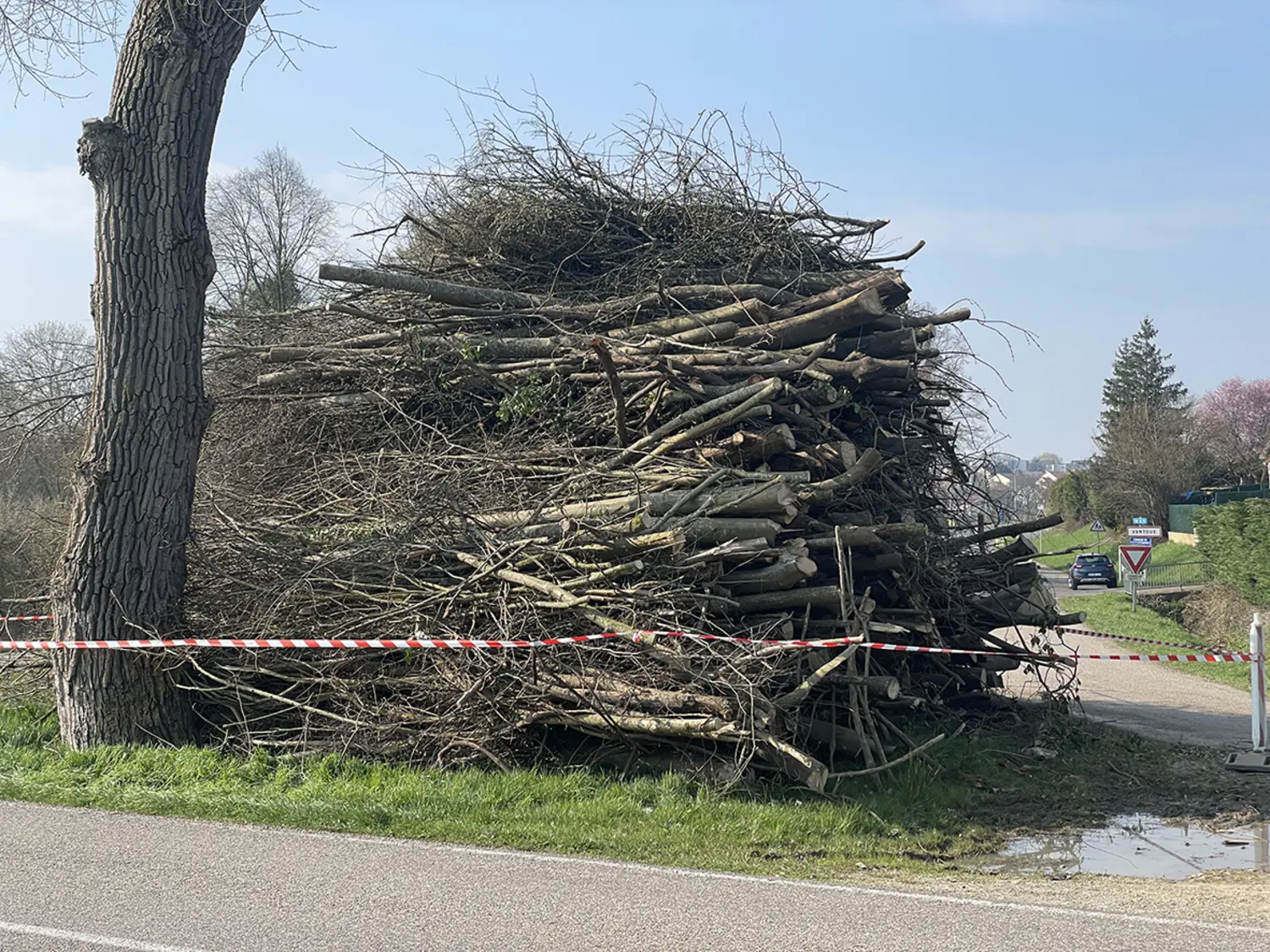 Beaucoup auront aperçu une véritable montagne de bois de plusieurs mètres de haut, à la sortie de Vantoux, au carrefour de Mey/Nouilly.