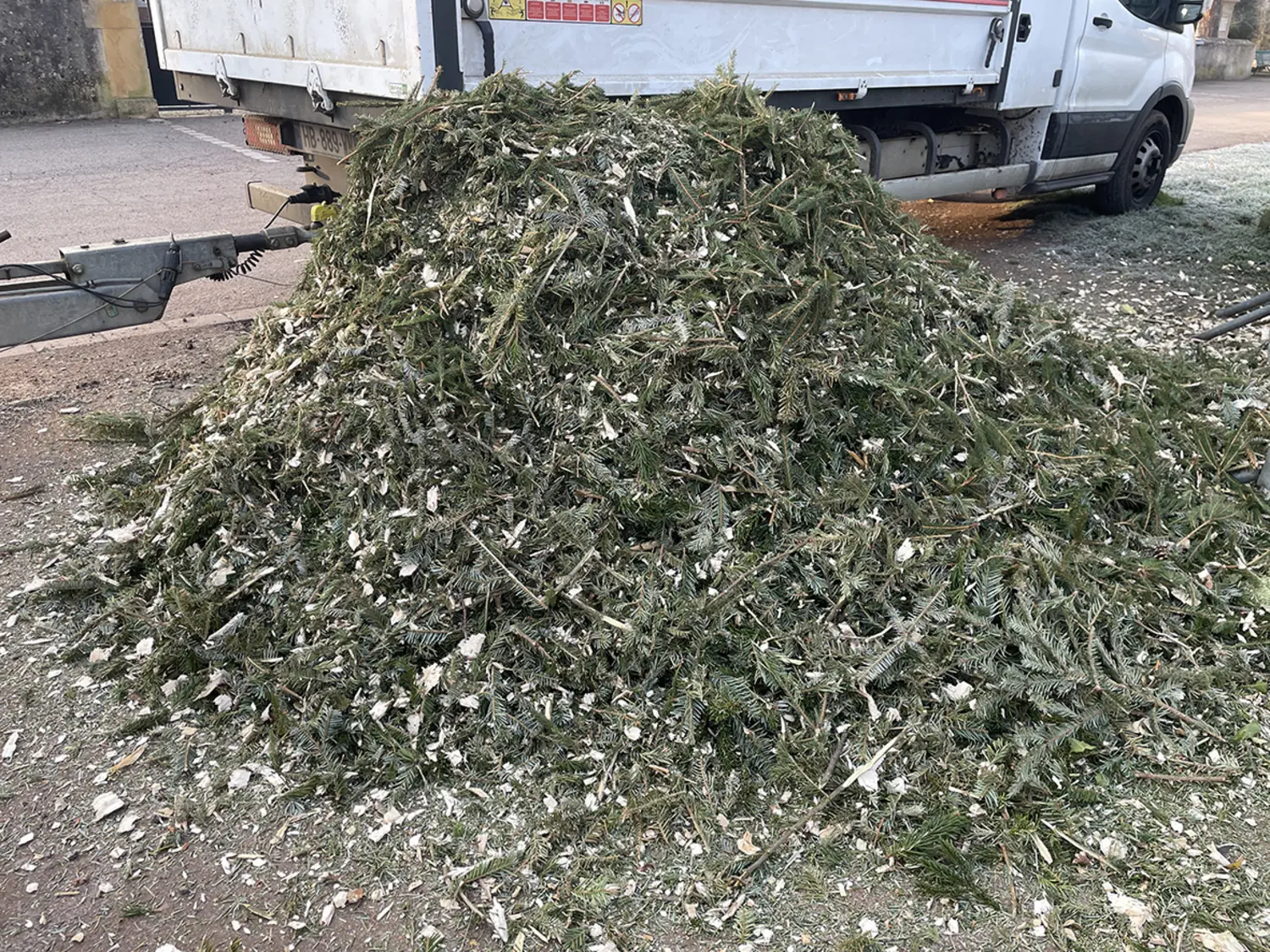 Collectés après les fêtes de fin d’année sur trois sites dédiés de la commune, près de 150 sapins ont été regroupés sur le parking situé à proximité du cimetière, avant d’être broyés directement sur place. Cette opération a été réalisée par l’entreprise Colbus de Boulay, spécialisée dans l’entretien des espaces verts et missionnée par l’Eurométropole.